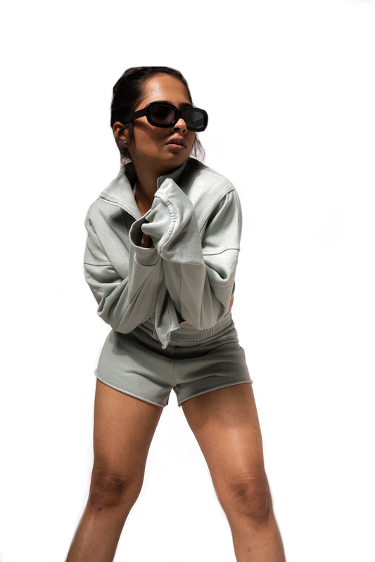 TWO PIECE ACTIVE LOUNGE WAIST LINE HOODIE IN GREEN