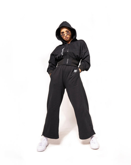 TWO PIECE ACTIVE LOUNGE WAIST LINE HOODIE IN BLACK