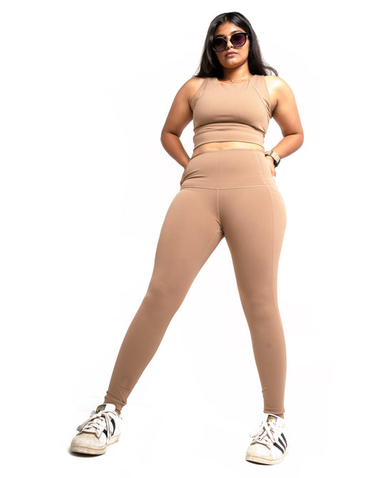 LONG LINE ACTIVE WEAR FITNESS BRA IN BROWN