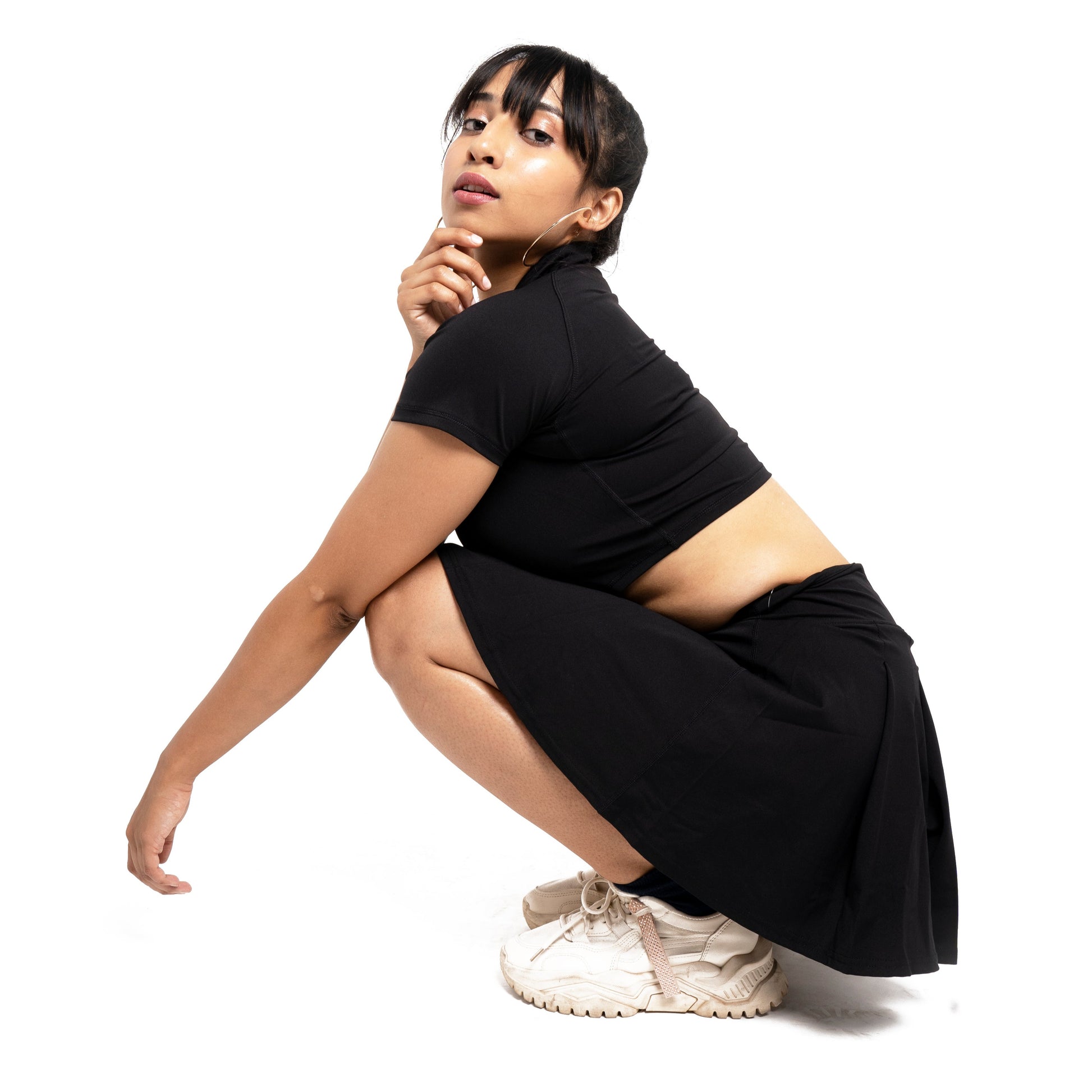 - Its crop top design adds a trendy touch to your active wardrobe.